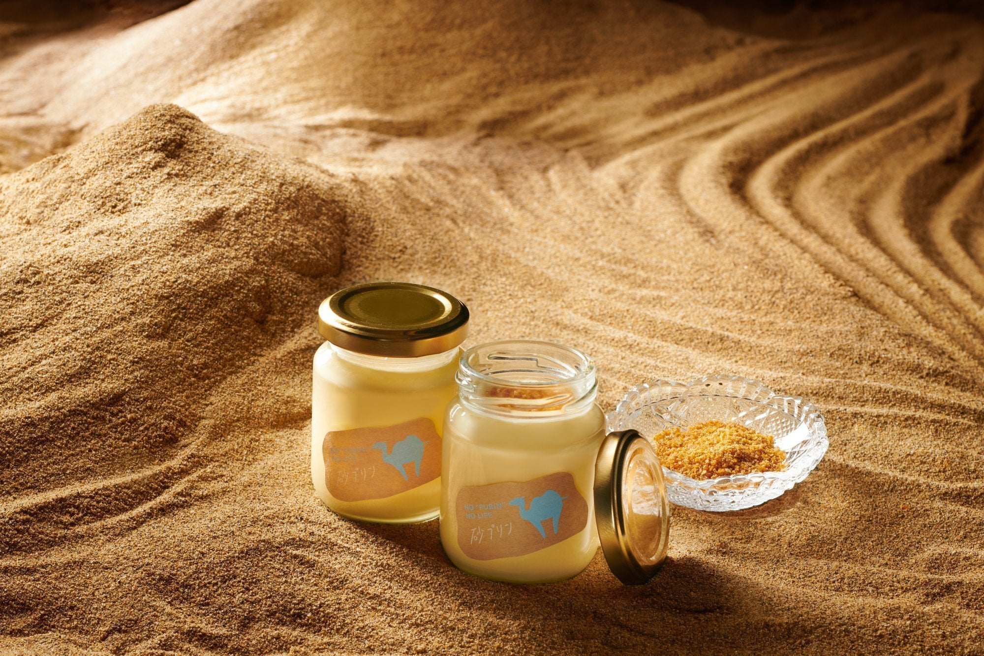 プリンに通常あるはずのカラメルが、粉末となって、この「砂」の中に入っています!
